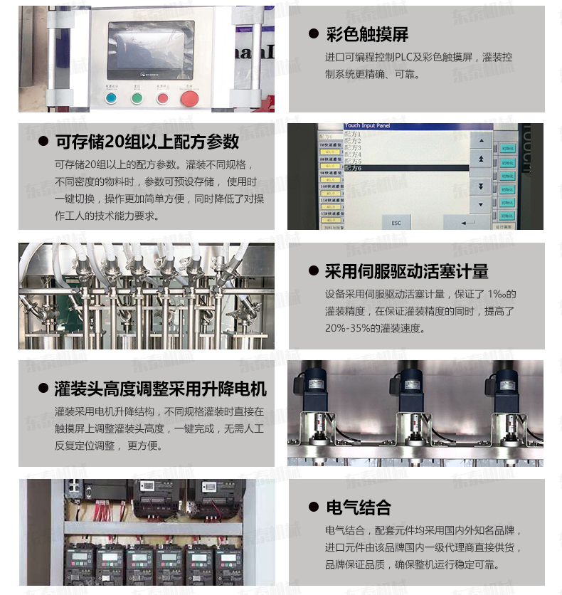 5、具有無(wú)瓶不灌裝、自動(dòng)進(jìn)瓶出瓶、自動(dòng)定位灌裝、自動(dòng)控制液位等功能,自動(dòng)化程度高;灌裝嘴設(shè)計(jì)科學(xué)合理,配防滴漏裝置,灌裝不滴漏,擁有物料瓶及設(shè)備的干凈衛(wèi)生。